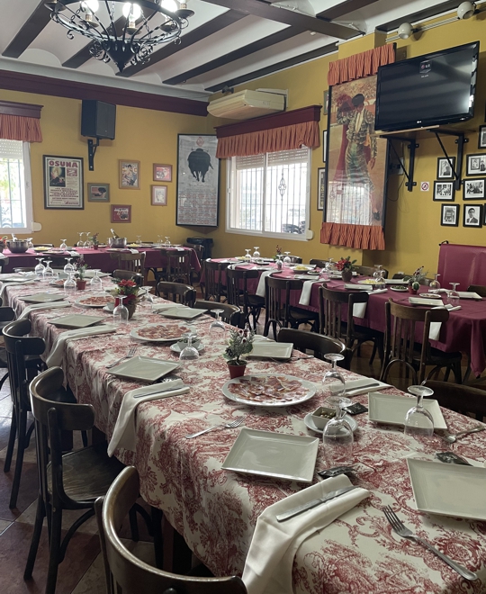 ¡Estamos tan cerquita de Sevilla! la ciudad mas bonita del mundo, su Maestranza, de ahí el montaíto piripi, ¡Y estamos tan cerquita de Málaga!; de ahí traemos sus famosas sardinas para espeto. Un poquito mas allá de Sevilla está Sanlucar, allí vamos por sus famosos langostinos, únicos en el mundo por su inconfundible sabor para las papas jarrieras. El pan y la verdura es de este bonito pueblo con mucho sabor a flamenco, de aquí: La Niña de la Puebla, José Menese, Diego Clavel, Rubito Pará hijo, Raúl Montesinos, Ana la Yiya, El Catato y como aficionado y amante del flamento y cliente, Rubio el Tange, etc.